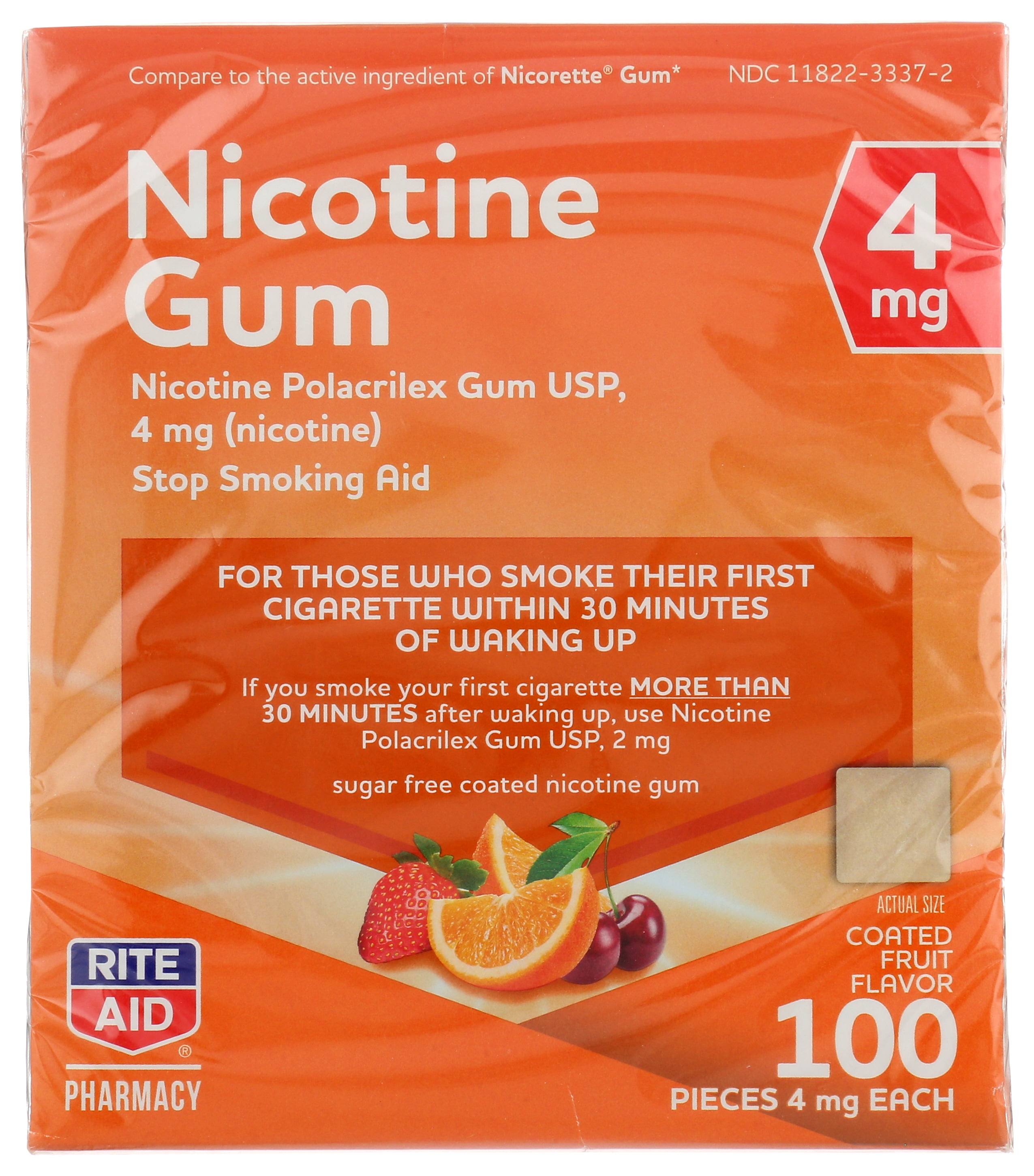 Rite Aid Nicotine Gum 4 Mg 100 Count Quit Smoking Aid Nicotine Replacement Gum Fruit Walmart Com