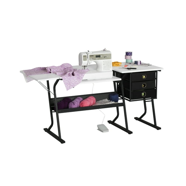 Sew Ready Eclipse Hobby Sewing Center Craft Table Sturdy Computer Desk With Drawers In Black White 13362